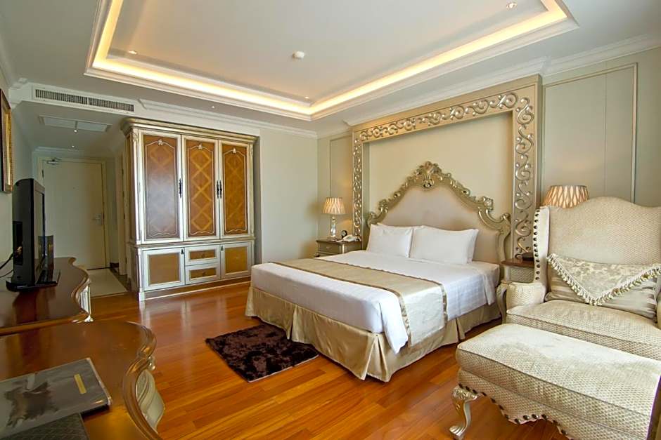 Enjoying sea views, spacious air-conditioned room has a flat-screen TV and DVD player. The large bathroom has a spa bathtub and a walk-in rainshower.